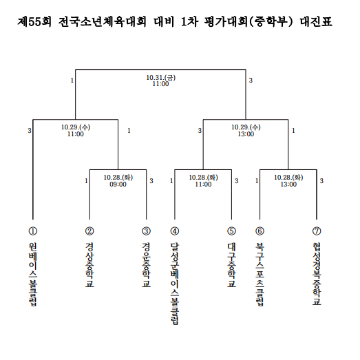 [대진표] 제55회 전국소년체육대회 대비 1차 평가대회(중학부)