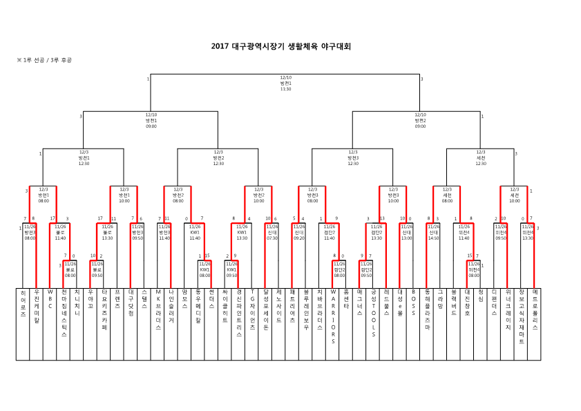 2017 대구광역시장기대회 - 12월 3일 경기일정