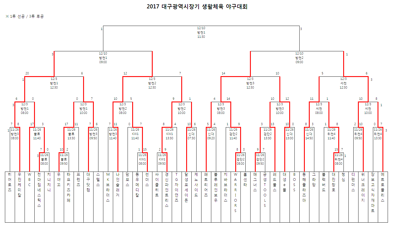 2017 대구광역시장기대회 - 12월 3일 경기일정
