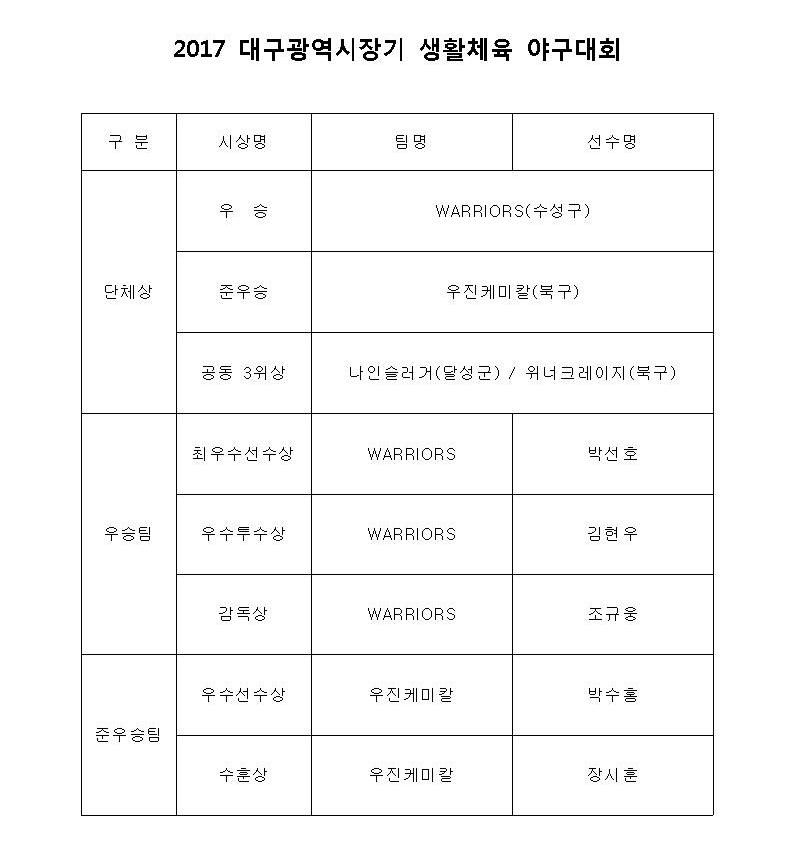 2017 대구광역시장기대회 - 12월 10일 경기결과 및 시상내역