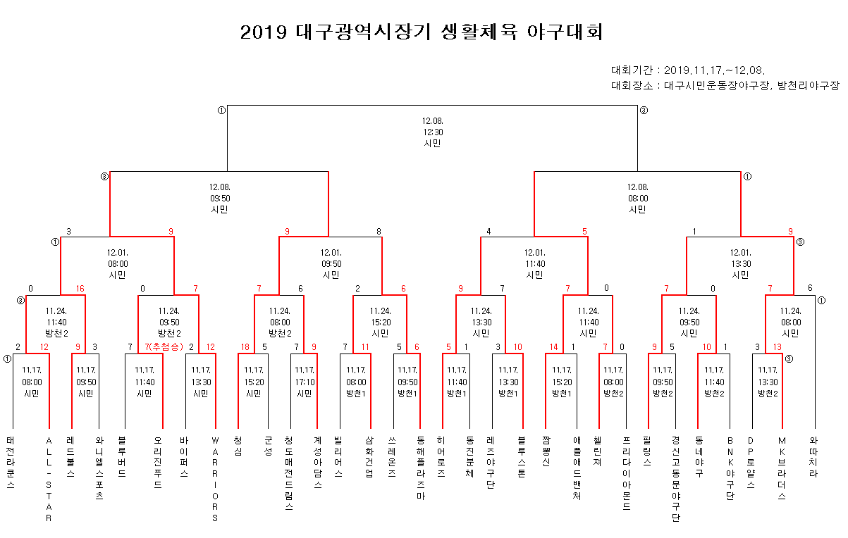 2019 대구광역시장기 - 12월 1일 경기일정