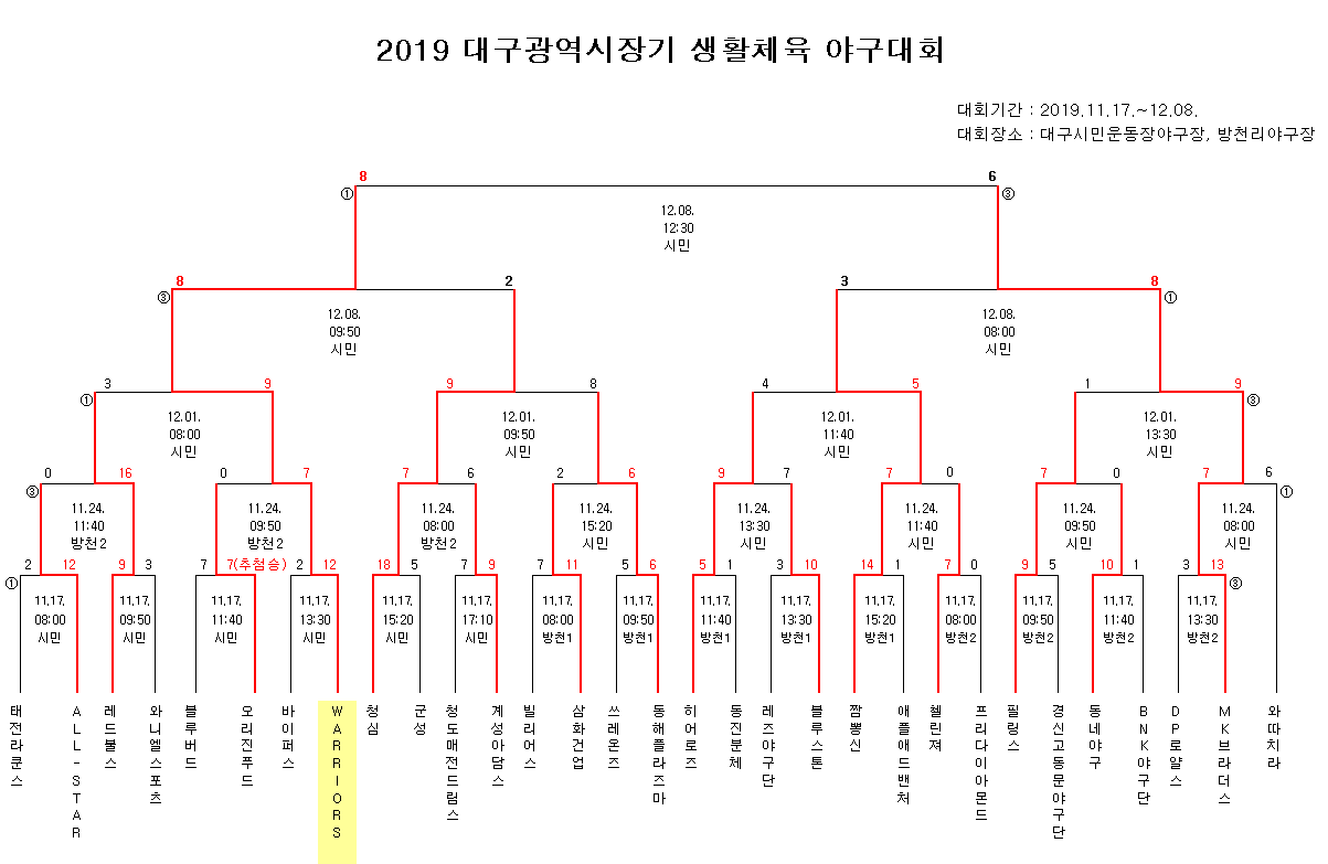 2019 대구광역시장기 - 12월 8일 경기일정