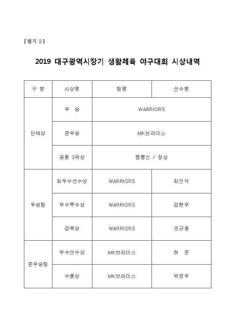 2019 대구광역시장기 - 12월 8일 경기결과 및 시상내역