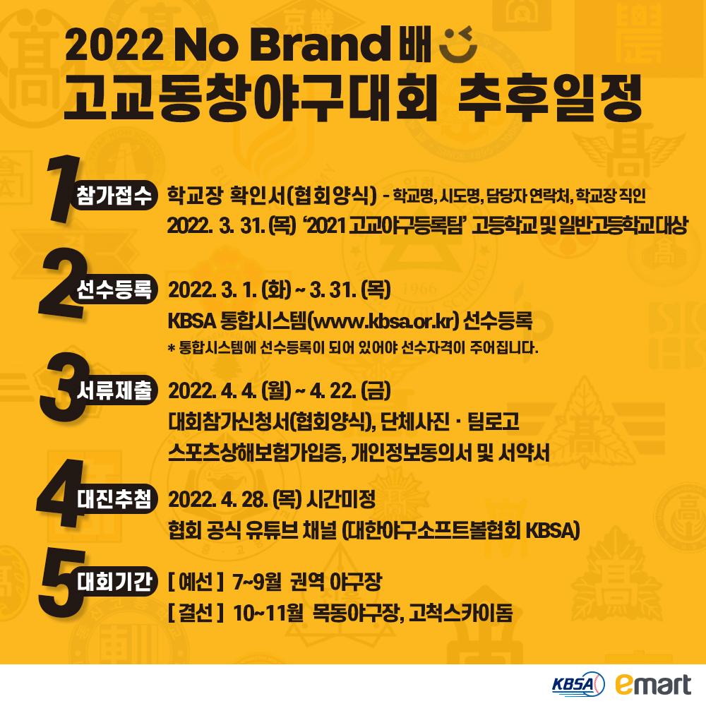 | 2022 No Brand배 고교동창 야구대회 참가신청 안내 |
