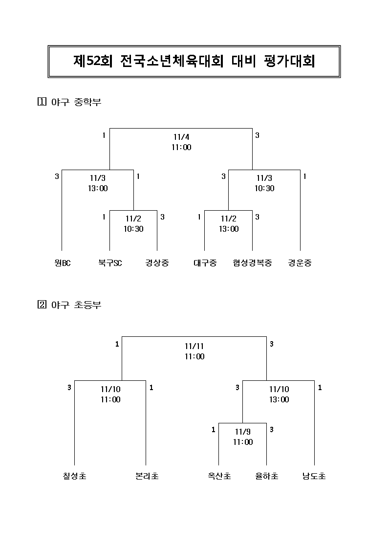 제52회 전국소년체육대회 대비 평가대회[야구] 대진표