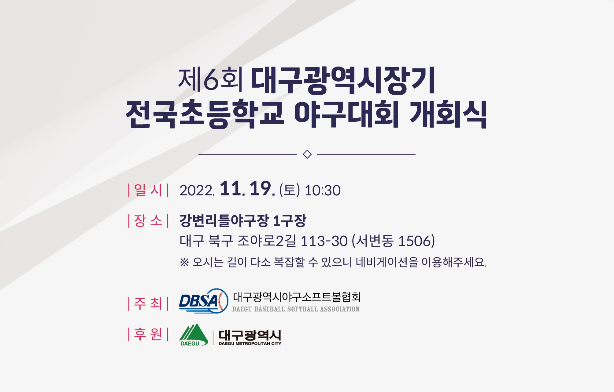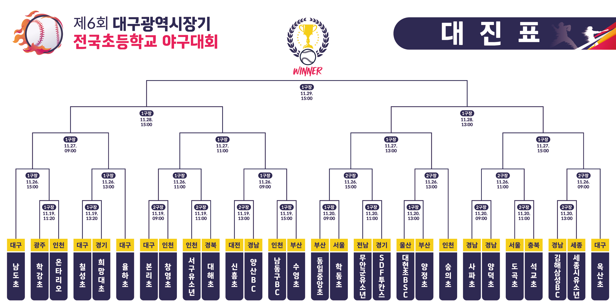 제6회 대구광역시장기 전국초등학교 야구대회 대진표 및 개회식 안내