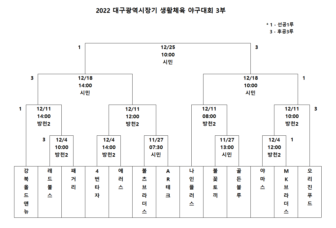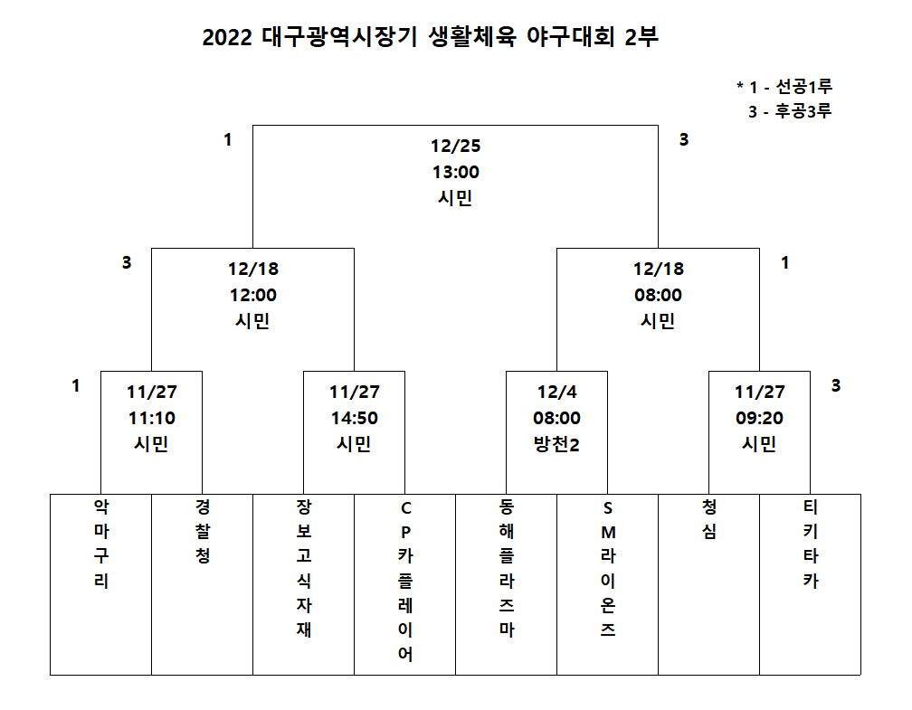 2022 대구광역시장기 생활체육 야구대회 - 11월 27일 경기결과