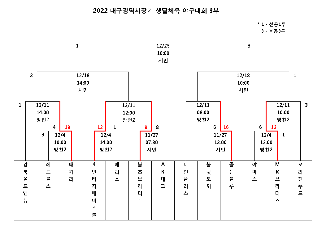 2022 대구광역시장기 생활체육 야구대회 - 12월 4일 경기결과