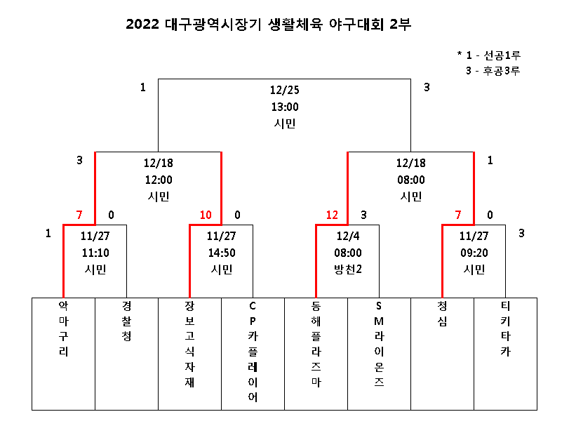 2022 대구광역시장기 생활체육 야구대회 - 12월 11일 경기결과