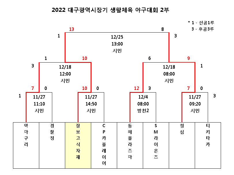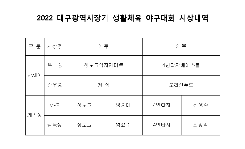 2022 대구광역시장기 생활체육 야구대회 - 12월 25일 경기결과