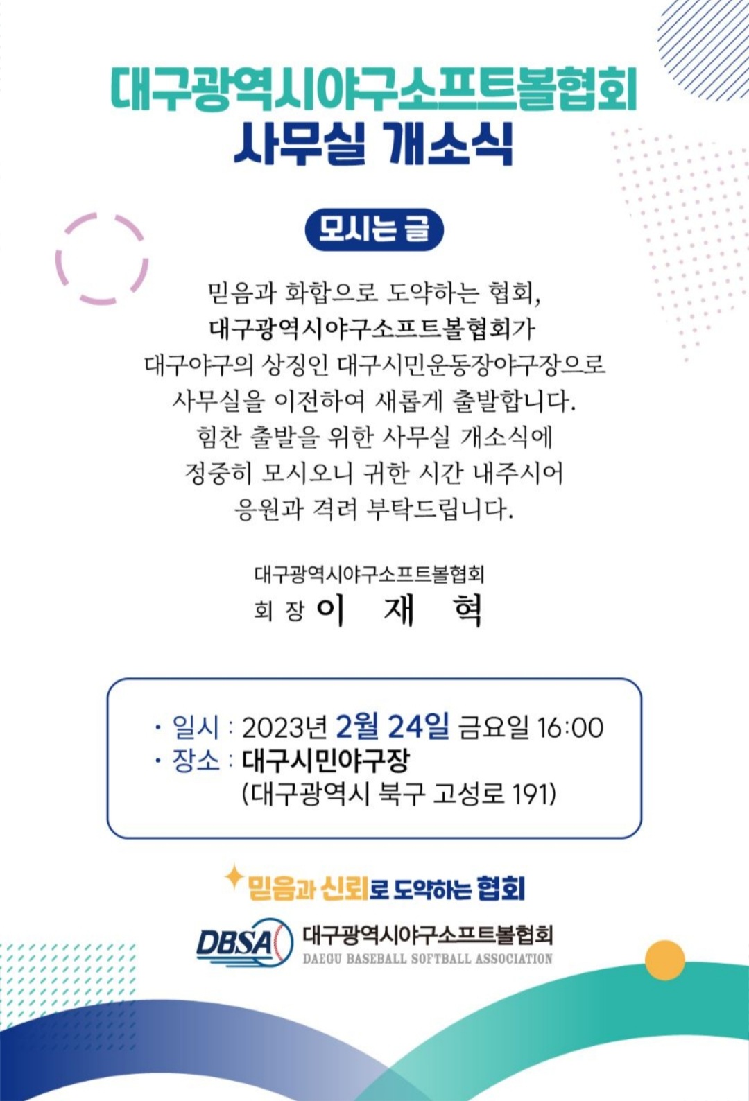-믿음과 신뢰로 도약하는 협회 대구광역시 야구소프트볼협회-