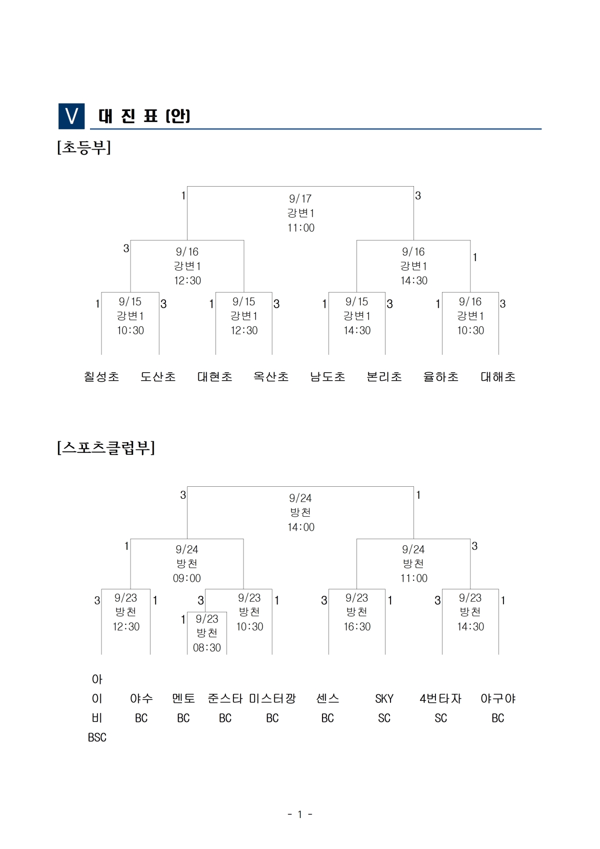 대회일정 및 결과